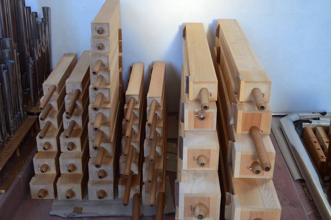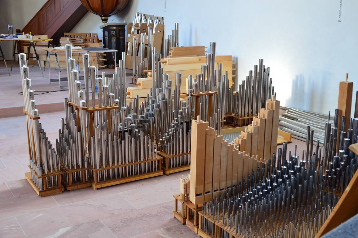 Holzpfeifen warten auf den Wiedereinbau
